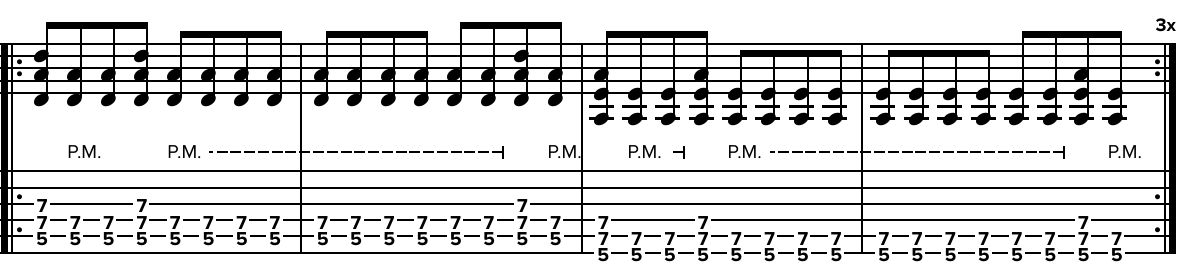 - palm-muting su powerchords nella strofa;