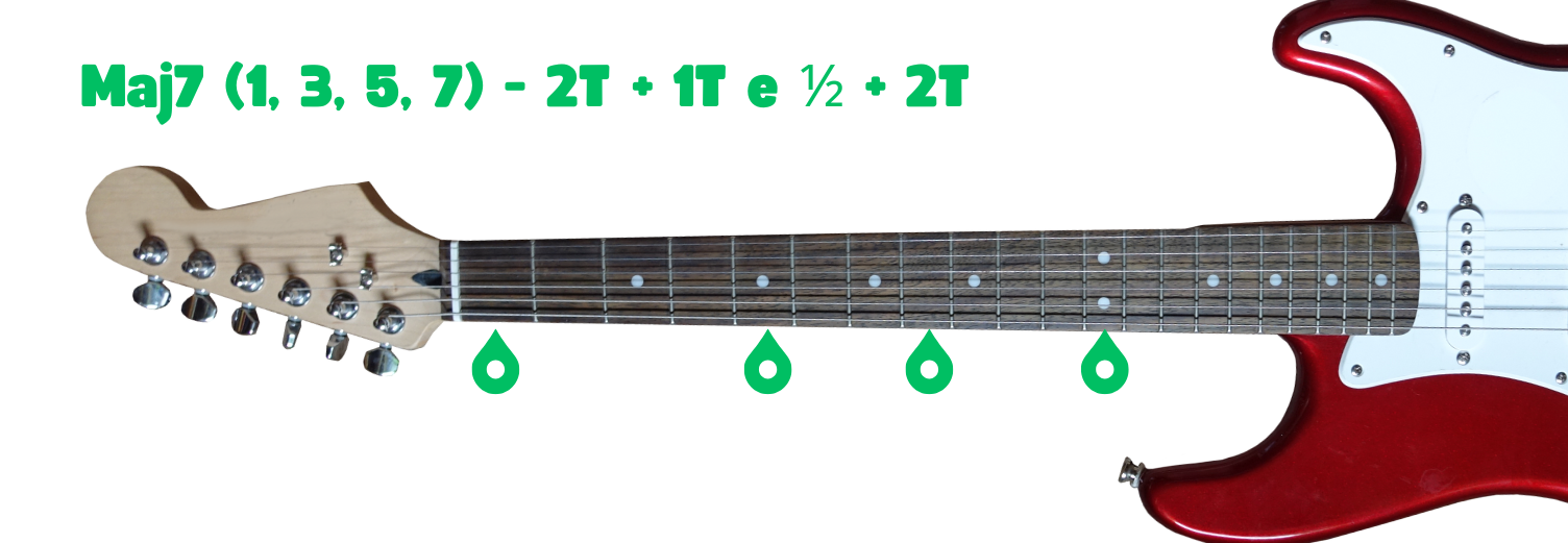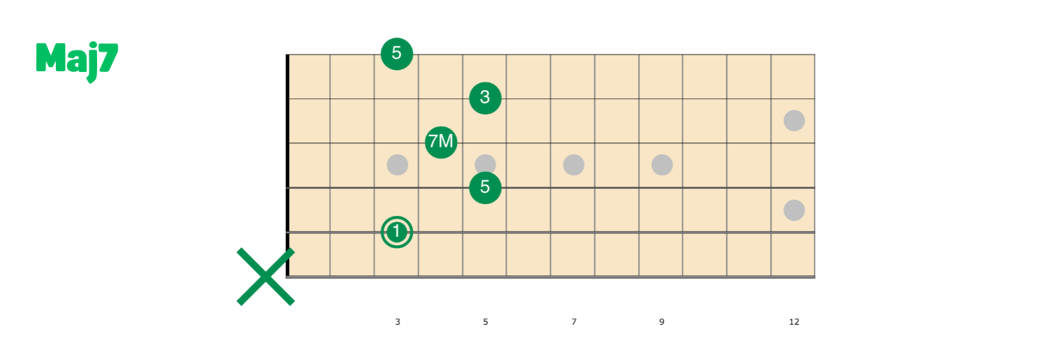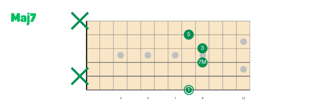 L’accordo Maj7 è, di base, una triade maggiore a cui aggiungiamo una quarta nota: la settima maggiore.