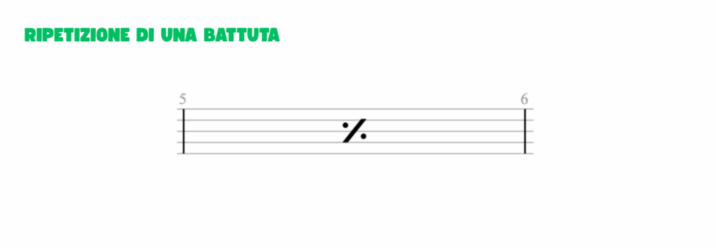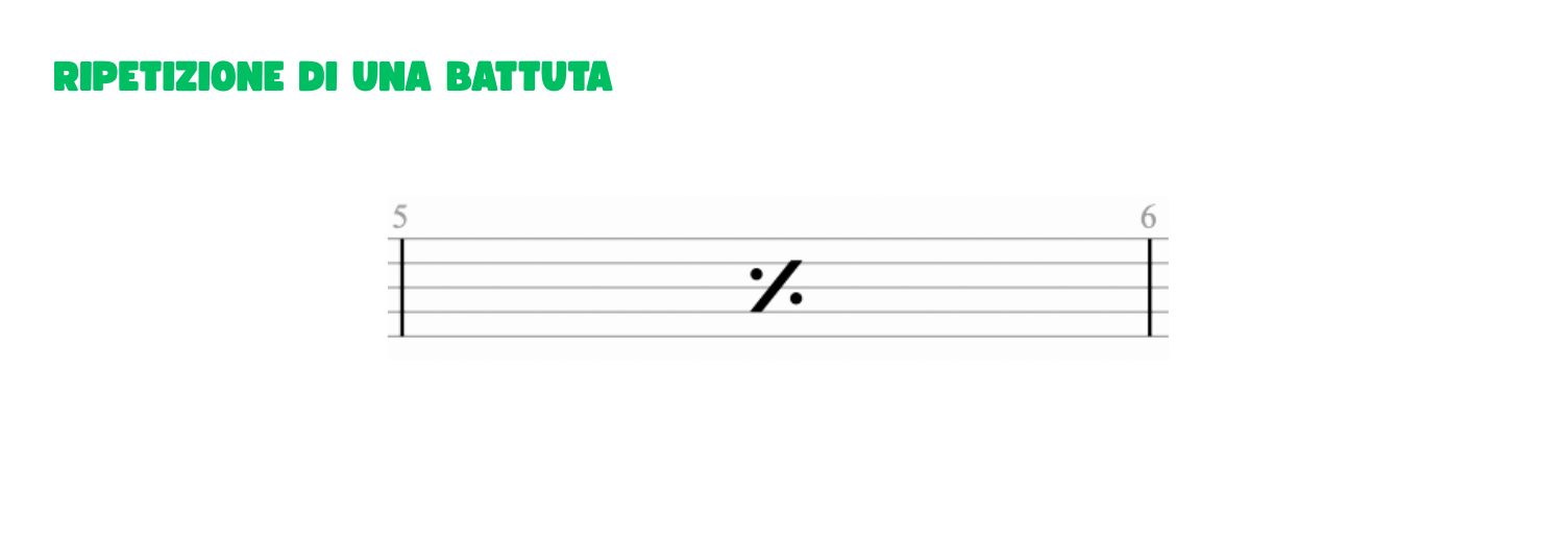 Ripetizione di una Battuta: Questo simbolo, che assomiglia a una percentuale (due puntini separati da una barra obliqua), indica che la battuta in cui si trova deve essere ripetuta esattamente come la battuta precedente. È un modo per risparmiare spazio nello spartito e rendere la lettura più rapida.