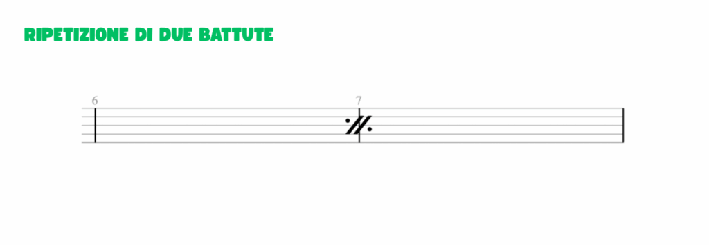Ripetizione di Due Battute: Un simbolo simile, con due barre oblique anziché una, posizionato a cavallo di due battute, indica che le due battute precedenti devono essere ripetute.