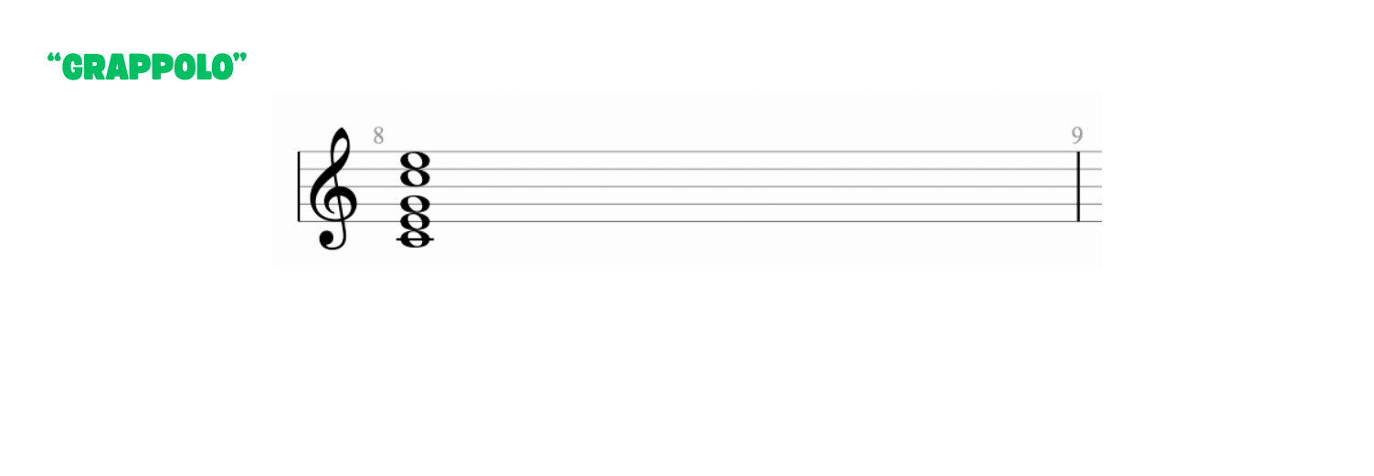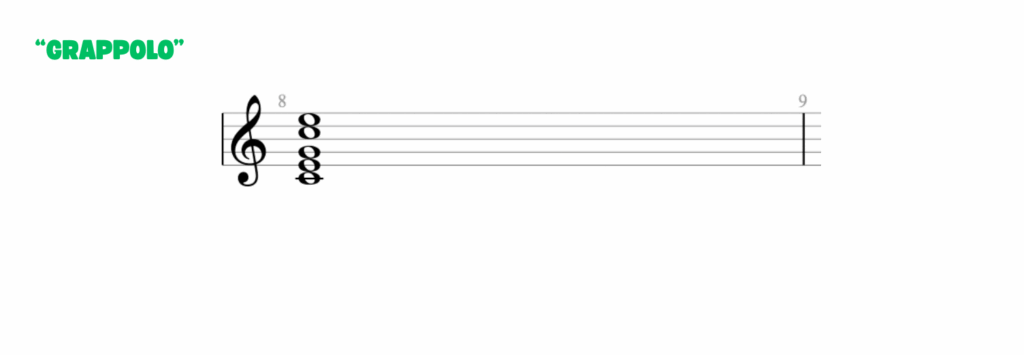 “Grappolo“: Quando le note sono disposte perfettamente in verticale una sopra l’altra sul pentagramma, indicano che devono essere suonate simultaneamente, formando un accordo. Questa è una lettura armonica. Anche se può sembrare complessa all’inizio, soprattutto con molti elementi contemporaneamente, è utile per capire come si muovono le singole voci all’interno degli accordi. Sapere che gli accordi sono spesso costruiti per la sovrapposizione di terze (come DO-MI-SOL) può aiutare a identificarli visivamente.