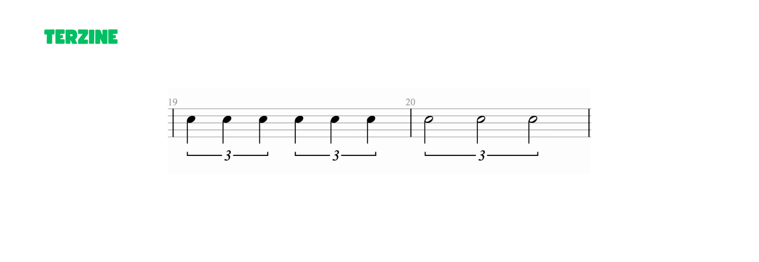 Andiamo ad esplorare una nuova figura ritmica, le terzine. Si tratta di una figura ritmica “dispari”, che consiste nel “forzare” l’inserimento di tre note all’interno di uno spazio ritmico che normalmente ne conterrebbe solo due.