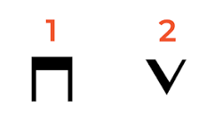 Ti riporto nell’immagine sottostante due simboli che ci saranno utili per leggere i successivi esempi. Il primo simbolo indica il downstroke ovvero la pennata in giù; il secondo indica l’upstroke, ovvero la plettrata in su.