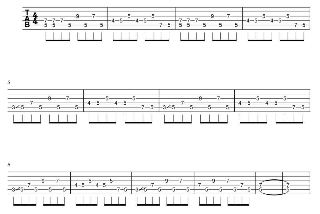 La chiusura di questo secondo riff (battute 9 e 10) è invece completamente identica a quella del primo riff.