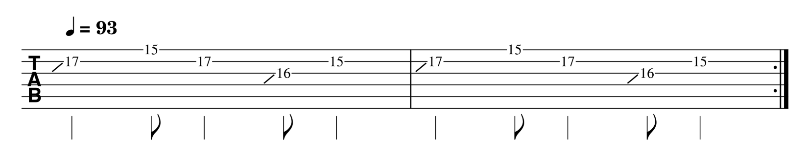 - lo slide effettuato sulla seconda corda fa atterrare il dito anulare sul tasto 17;