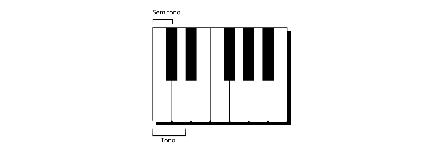 - Tono: Un tono è formato da due semitoni. Sul pianoforte, sono due tasti (ad esempio, DO e RE). Sulla chitarra, corrispondono a due tasti di distanza (ad esempio, FA e SOL).