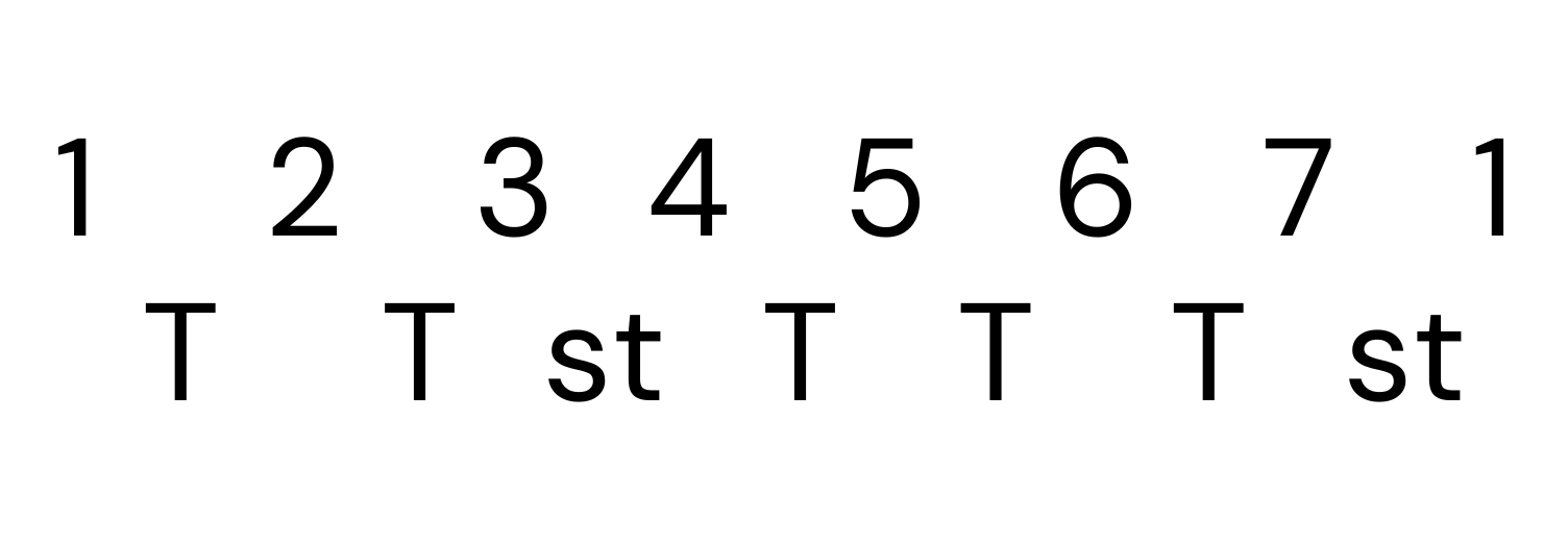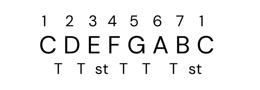 Il segreto per costruire qualsiasi scala maggiore è conoscere il suo schema intervallare, una sequenza di Toni (T) e Semitoni (S) che è sempre valida.