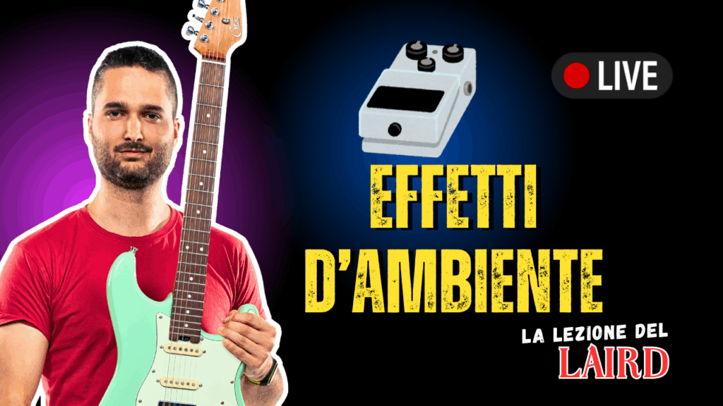 In questa lezione di chitarra live andata in onda Mercoledì 17 alle 18:30, Luca Marinelli mostra cosa siano e come si utilizzino il delay e il riverbero.