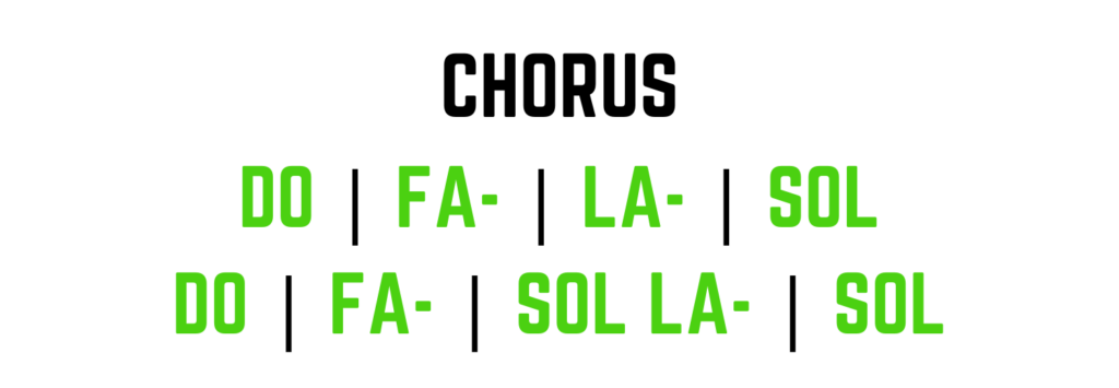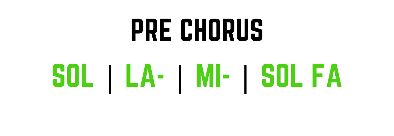 Nell’ultima battuta del pre-chorus, il tempo si dimezza: l’accordo di SOL maggiore e quello di FA maggiore si dividono equamente lo spazio della battuta, creando la rincorsa finale.