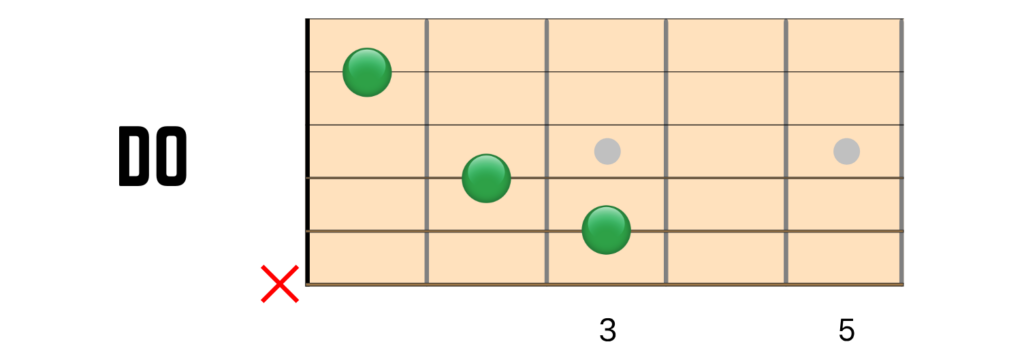 DO maggiore (C): Non suonare la sesta corda (il MI grave). Posiziona il dito anulare sul terzo tasto della corda di LA. Il dito medio va sul secondo tasto della corda di RE. La corda di SOL suona a vuoto. Il dito indice preme il primo tasto della corda di SI, mentre il MI cantino (la prima corda) suona a vuoto.