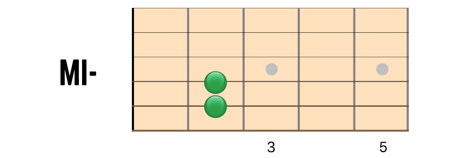 MI minore (Em): L’accordo più semplice del lotto. Tutte le corde suonano a vuoto, ad eccezione delle corde di LA e di RE, che vanno premute al secondo tasto utilizzando il dito medio e l’anulare.