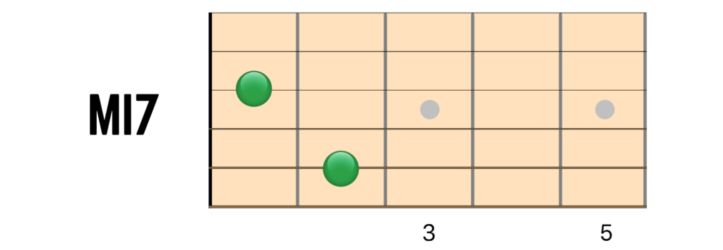 Per eseguire il MI7 posizionerai il medio al tasto 2 della corda di LA e l’indice al tasto 1 della corda di SOL. Le altre corde risuoneranno a vuoto.