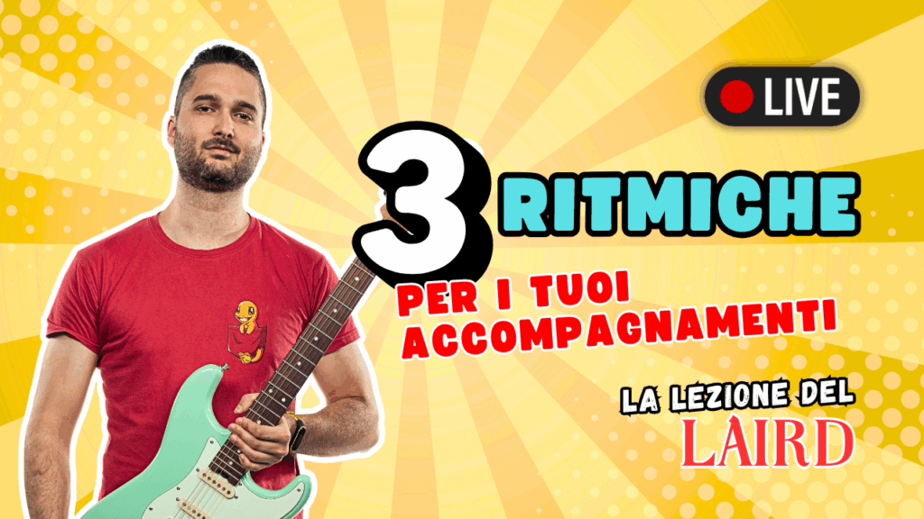 In questa lezione di chitarra live andata in onda Mercoledì 9 alle 18:30, Luca Marinelli mostra 3 ritmiche da poter provare nei vostri accompagnamenti.