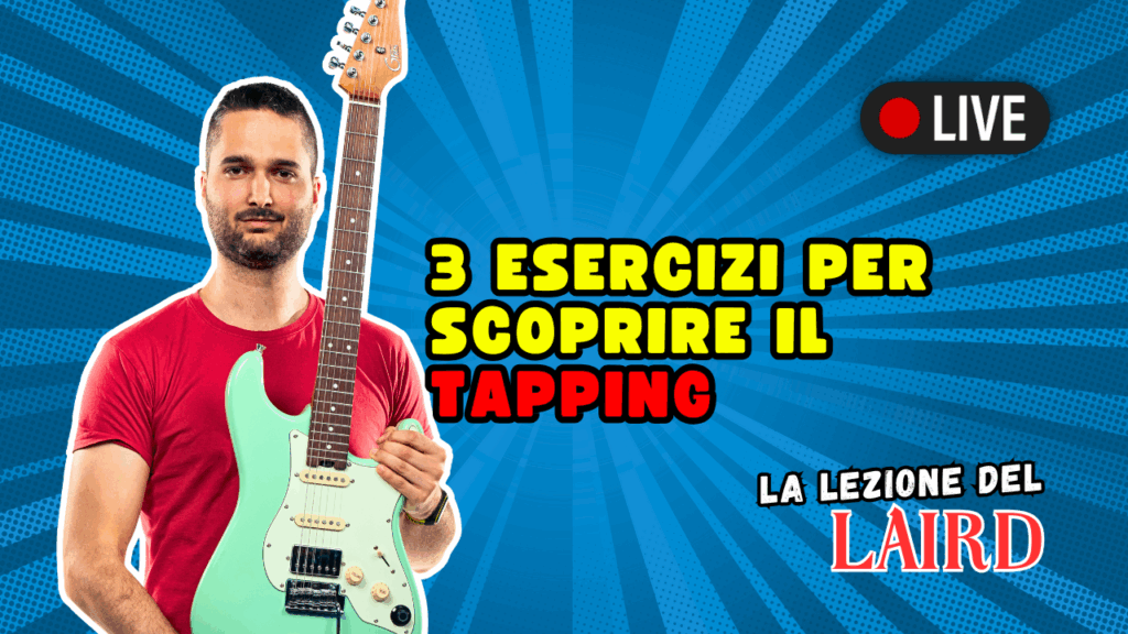 In questa lezione di chitarra live andata in onda Mercoledì 23 alle 18:30, Luca Marinelli mostra 3 esercizi per poter scoprire la tecnica del tapping.