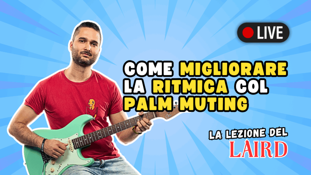 In questa lezione di chitarra live andata in onda Mercoledì 3 alle 18:30, Luca Marinelli mostra diversi modi con cui si possano migliorare le ritmiche grazie alla tecnica del Palm Muting.