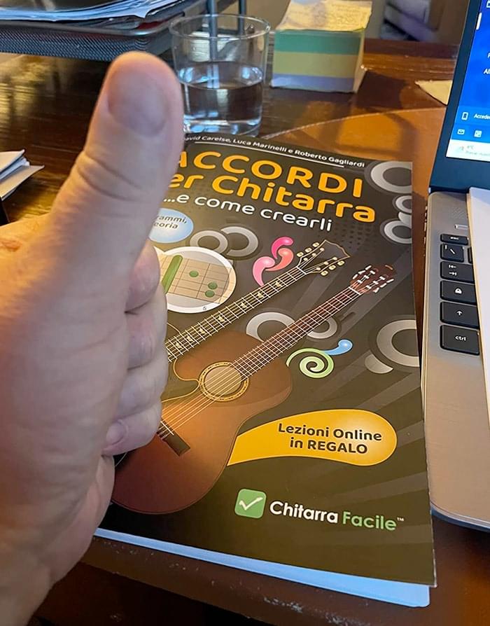 "È molto bello e dettagliato, io poi sono anche cliente ed allievo di Chitarra facile, con David, Luca Marinelli Michele Mastriani e tutto il gruppo Chitarra facile.com. Ragazzi ci sono tutti gli accordi dettagliati oltre il 12°tasto, tutto a colori con istruzioni...una figata.W la musica suonata "